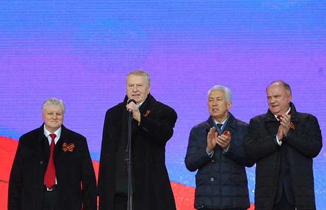 — Прошлый год войдет в историю как год русской весны. Уступки и потери закончились. Наступила эра побед, эпоха собирания земель, — поддержал коллег глава «Справедливой России» Сергей Миронов.