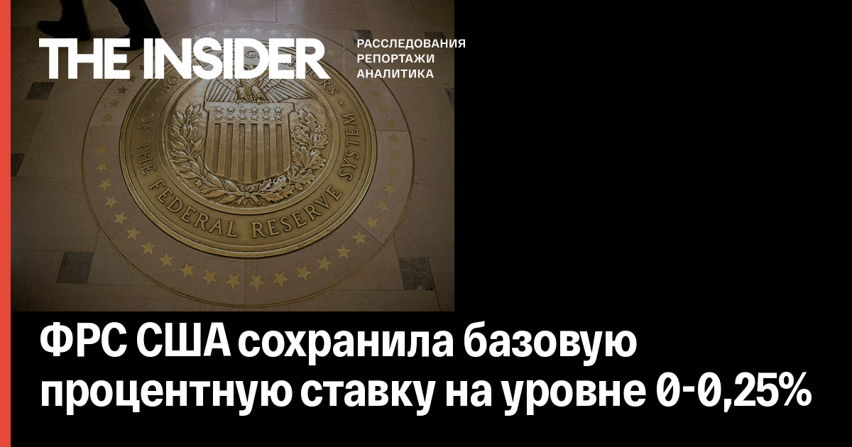 ФРС США сохранила базовую процентную ставку на уровне 0-0,25%