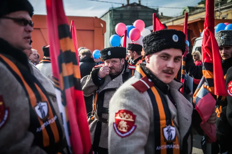 Харатьян и его партнерша Ольга Тимофеева очень старались воодушевить собравшихся на Васильевском спуске. «Год назад восторжествовала историческая справедливость, — звенящими от радости голосами, убеждали они пришедших на митинг людей. — Вы только вдумайтесь: когда родился Пушкин, Крым был русским. Когда построили Эйфелеву башню в Париже, Крым был русским. Когда Чайковский писал «Лебединое озеро», Крым был русским».