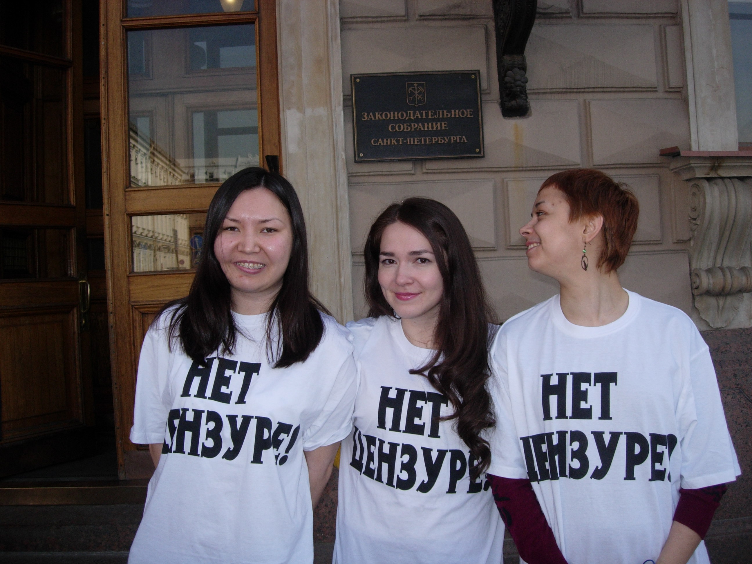– Вот ребята сегодня пришли в футболках, а фракция "Единой России" пришла в георгиевских ленточках – мы же не говорим, что это организованный пикет или какая-то акция? А чем хуже журналисты в футболках с красивой, правильной надписью "Нет цензуре!"? Что, там какие-то призывы или бранная лексика? Нет закона, который это запрещает. А кроме закона есть еще здравый смысл. Я очень хочу, чтобы эта проблема была снята, и петербургский парламент стал самым открытым местом для прессы. Здесь сидят представители законодательной власти, избранной народом, – и что, мы сейчас закроемся? Все равно найдут журналисты всю информацию, которая им нужна – разве нет сотовых телефонов и интернета?