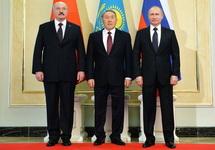 Владимир Путин заявил, что странам Евразийского экономического союза настало задуматься о введении единой валюты. "Мы условились с партнерами продолжить координацию монетарной политики, - передает Интерфакс слова Путина, сказанные после встречи в Астане с лидерами Белоруссии и Казахстана. - Думаем, пришло время поговорить и о возможности формирования в перспективе валютного союза".