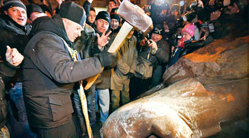 Ставший традиционным снос памятников Ленина на Украине вызвал у многих российских левых раздражение, Киев, 8 декабря 2013 года «Мелкобуржуазная сволочь» В целом же кризис российских непарламентских левых назревал давно. Первая кошка пробежала между ними в 2011-2012 годах. Многие левые поддержали тогда движение «За честные выборы» и выступали с трибун на акциях протеста наравне с другими оппозиционерами. Медийность Удальцова к тому времени достигла пика — каждое задержание и административный арест широко освещались в прессе, в феврале 2012 года он в числе прочих активистов Болотной был даже приглашен к президенту Дмитрию Медведеву в резиденцию «Горки». И это, кстати, вызвало резкую реакцию в левом движении. «Часть (левых) осознала необходимость участия в протестах, другая называла протестующих мелкобуржуазной сволочью», — пояснил NT член РСД Владимир Плотников.