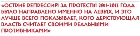 Член ЦК ОКП Дарья Митина убеждена: острие репрессий за протесты 2011-2012 года было направлено именно на левых, и это лучше всего показывает, кого действующая власть считает своими реальными противниками. «В заложники власть выбрала именно лидеров левого крыла протестной среды. И несмотря ни на какие обстоятельства и соображения гуманизма, несмотря на широкую международную кампанию солидарности с заключенными, власть не смягчила наказание Удальцову и Развозжаеву, хотя бы символически», — резюмирует Митина.