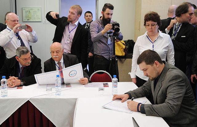 В результате главным докладчиком по украинской теме был председатель движения «Битва за Донбасс» Алексей Живов. Он похвастался, что его организация собрала шесть миллионов рублей на помощь Донбассу — и десятитысячный митинг в поддержку «Новороссии».