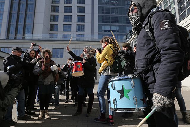 Пикет антифашистов вызывал живой интерес у их идеологических противников. «О времена, о нравы! Сложно представить, что новые скинхеды в зеленых бомберах будут ходить и нас пикетировать!» — смеялись вышедшие на улицу участники форума и фотографировались на фоне леваков.