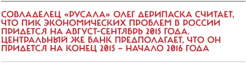 Совладелец «Русала» Олег Дерипаска несколько дней назад довольно внятно прокомментировал этот сценарий: с его точки зрения, пик экономических проблем в России придется на август-сентябрь 2015 года. Центральный же банк, пересмотрев собственный прогноз ситуации в экономике при цене нефти в $50 за баррель, предполагает, что пик экономического спада в России придется на конец 2015 — начало 2016 года. До этого момента дела в экономике будут не «все лучше и лучше», а «все хуже и хуже». ЦБ предполагает, что в 2016 году экономика России продолжит падать, хотя и не так сильно, как в 2015-м. Поквартальный рост ВВП, исходя из этой модели, начнется предположительно во II квартале 2016 года, а годовой рост ВВП (правда, очень сильный — на уровне более 5 %) будет зафиксирован в 2017 году.