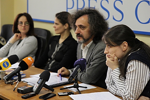 2. Презентация доклада посвященного мониторингу и анализу злоупотреблений антиэкстремистским законодательством в Независимом пресс-центре. Фотография пресс-службы центра "СОВА".