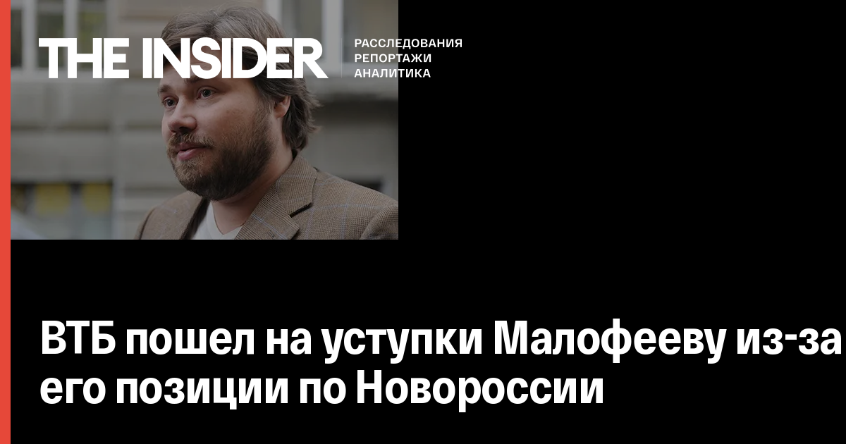 ВТБ пошел на уступки Малофееву из-за его позиции по Новороссии