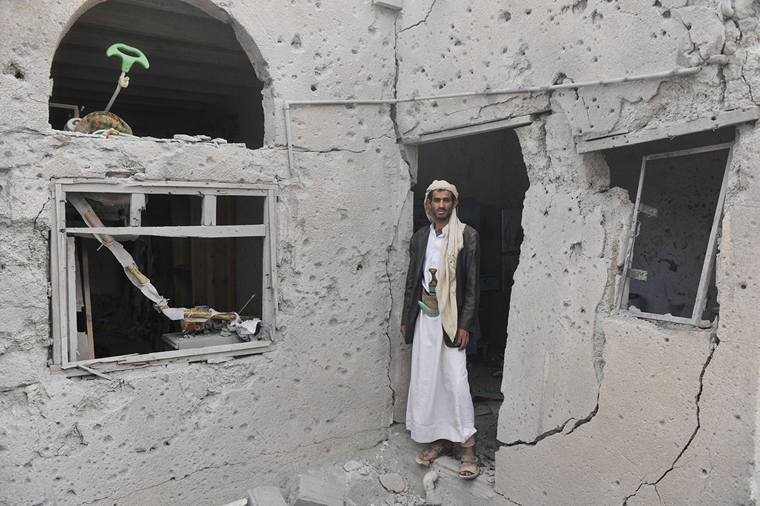 Возле разрушенного хуситами здания в городе Сана, июль 2014 года