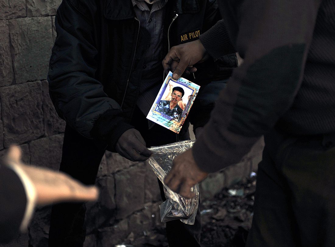 Полиция собирает вещдоки на месте террористического акта в Сана, январь 2015 года