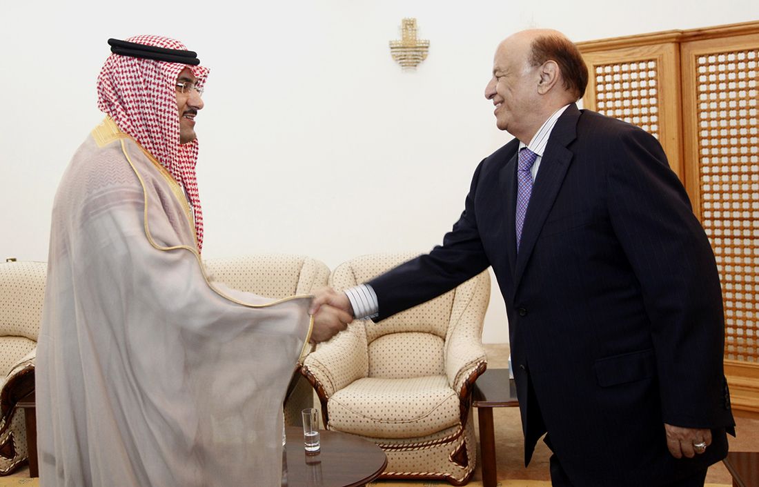 Президент Йемена Абд Раббух Мансур Хади (справа) и посол Саудовской Аравии в Йемене Мохаммед Саид аль-Джабер, Аден, февраль 2015 года