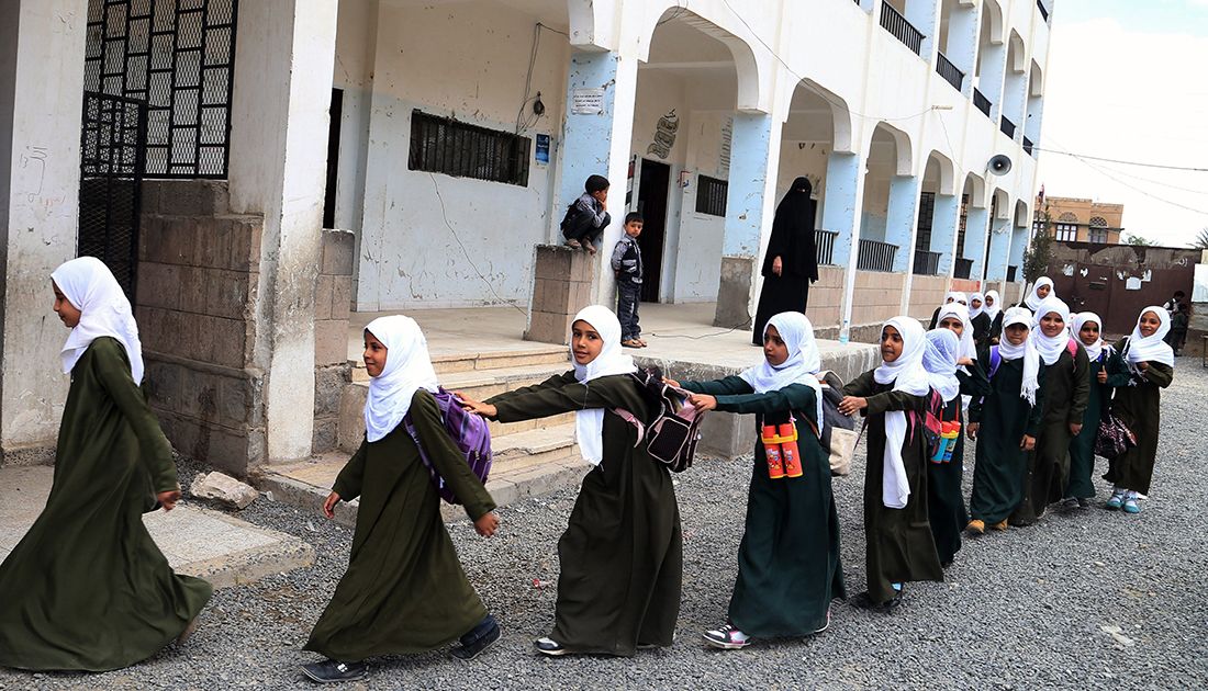 Школьницы, которых отпустили по домам из-за противостояния хуситов и правительственных войск, сентябрь 2014 года