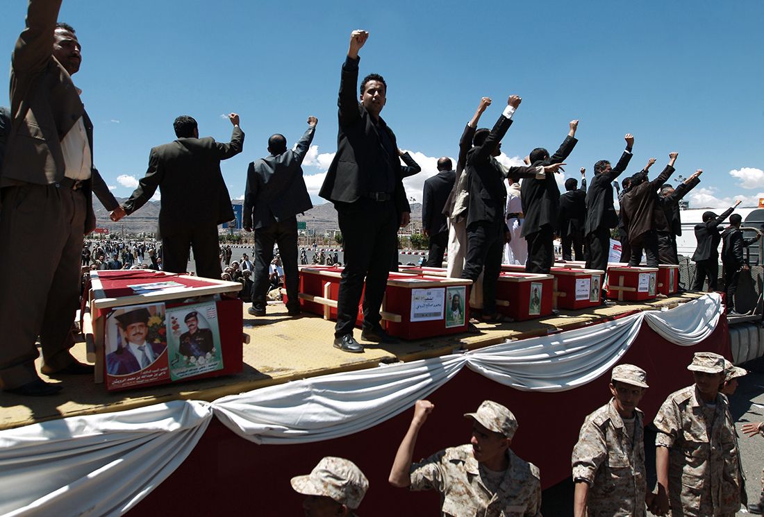 Захоронение жертв теракта в Сане, 25 марта 2015 года