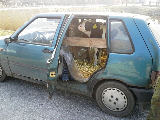 Полиция польского города Могильно обнаружила автомобиль Fiat Uno, хозяин которой оборудовал хлев вместо заднего сидения. Патрульный, остановивший 53-летнего мужчину из сельской волости Злотники-Куявске, обнаружил в задней части его машины трех телят.