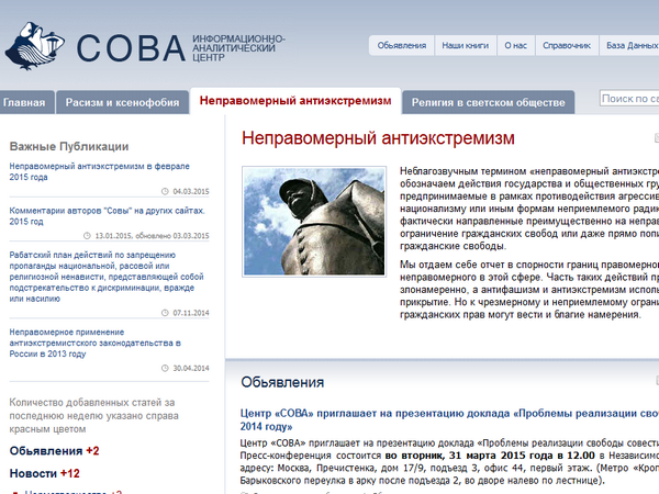 Неправомерное применение антиэкстремистского законодательства в России в 2014 году – аналитический портал ПОЛИТ.РУ