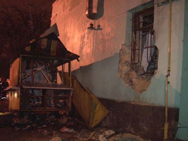Взрыв на пересечении Ольгиевской и Манежной улиц прогремел поздно вечером в субботу. Взрывом повредило стену и окна одноэтажного здания, выбило стекла.