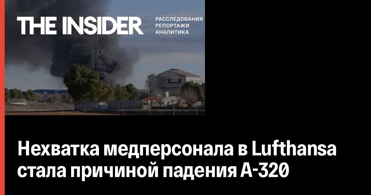 Авиакомпания Lufthansa, которой принадлежал упавший самолет Airbus А-320 (Germanwings), была не в состоянии обеспечивать всех своих сотрудников качественным медицинским обслуживание, пишет «Интерфакс» со ссылкой на Welt am Sonntag. Именно это, по версии издания, могло стать одной из причин падения пассажирского самолета.