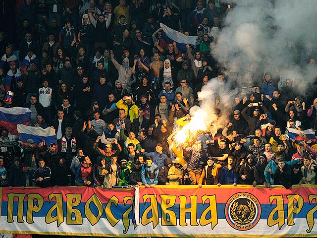 Флаги Сербии и Российской империи могут послужить для Союза европейских футбольных ассоциаций (УЕФА) поводом наказать сборную России по итогам дела о сорванном матче отборочного турнира чемпионата Европы-2016 с Черногорией в Подгорице, сообщает Sportbox.ru со ссылкой на черногорский портал Cafe Del Montenegro.