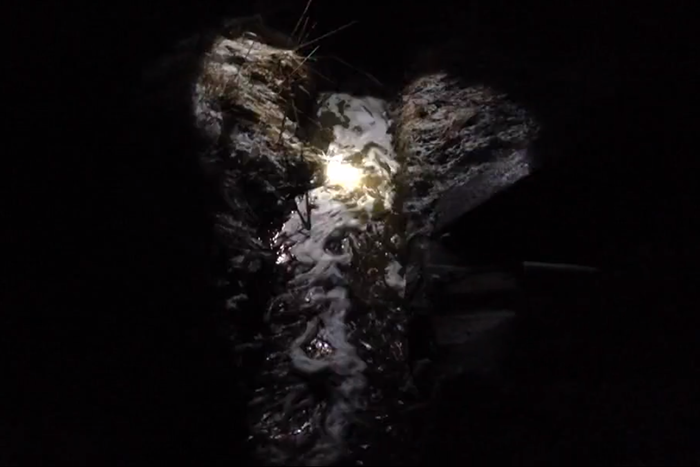 Сток с Красного Бора в ночь на 31 марта. Кадр из видео МОП «Патриот» Новый «бурлящий ручей» с Красного Бора