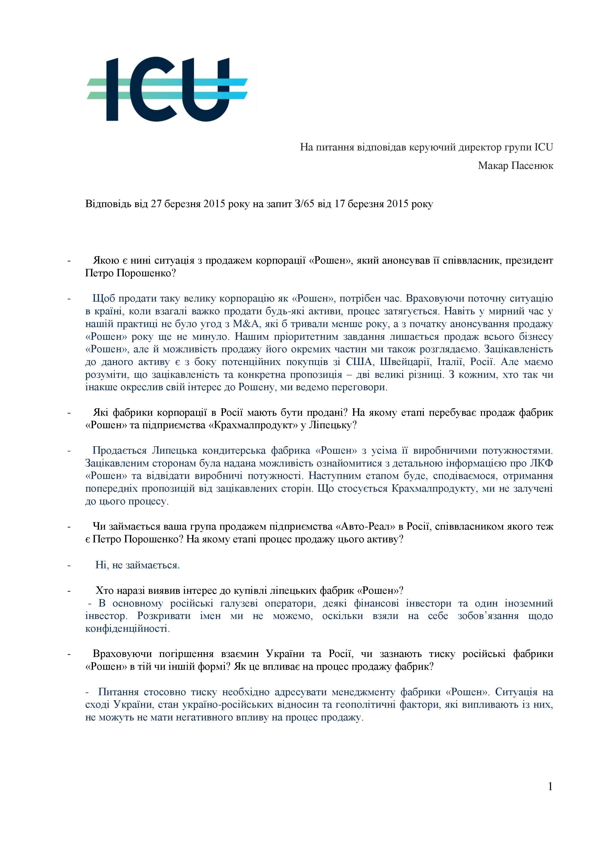 На запрос Радио Свобода пресс-служба ICU Group отметила: чтобы продать такую большую корпорацию, как "Рошен", нужно время: