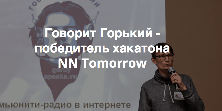Победителем хакатона был признан проект Говорит Горький. Автор проекта Алексей Бершацкий представил на суд жюри проект комьюнити-радио, поддерживающего нижегородских исполнителей. Девиз проекта – «Слушай нижегородское!». Проект также является образовательной площадкой для начинающих радийщиков. Команда получит 60 тыс. рублей на доработку проекта.