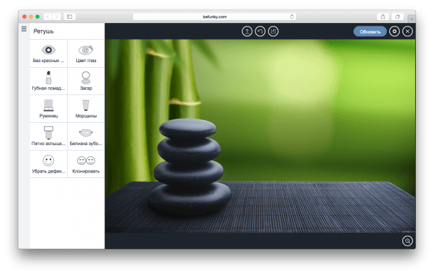 Во второй вкладке собраны инструменты для ретуши фотографий. С помощью них очень удобно работать над портретами.