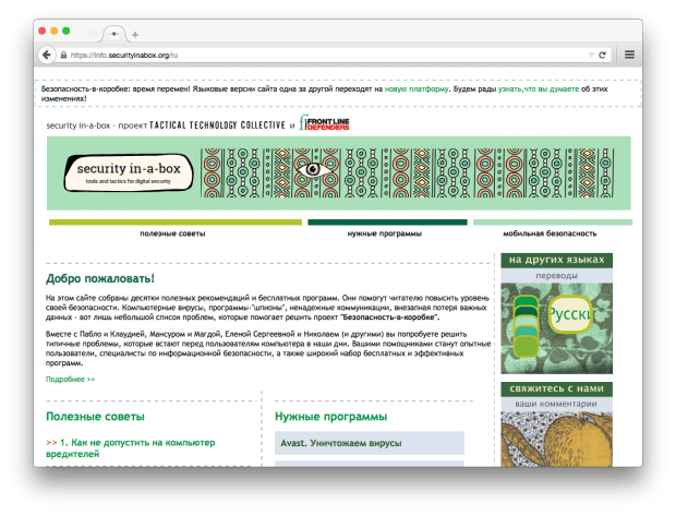 Чтобы получать новости и обновления проектов, мы рекомендуем подписаться на рассылку Tactical Tech.