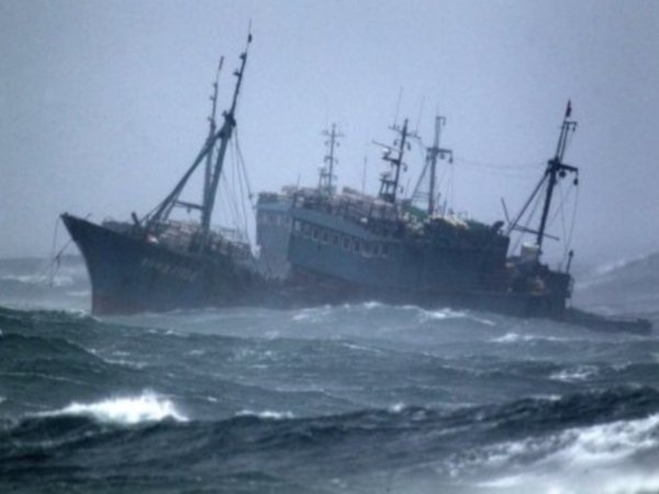 Поиски моряков с затонувшего траулера в Охотском море приостановлены до утра