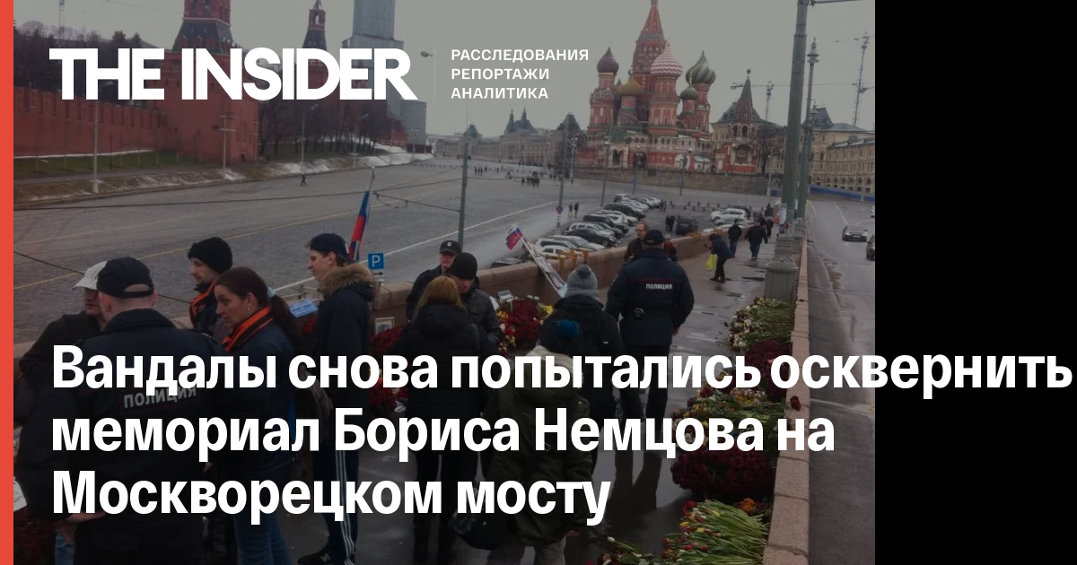 Осуществить задуманное хулиганам помешали сторонники Бориса Немцова, дежурящие на мосту и охраняющие мемориал от осквернения. «Приходили «тарасевичи», - пишет в «Фейсбуке» один из защитников мемориала Слава Героеев. - Пытались опять сделать ЭТО. Разводила нас доблестная милиция, которая проявила неописуемое понимание. Теперь бродят их шпионы и пытаются срывать таблички. Ждем новых провокаций. Параллельно тут стоит усиление первого оперативного полка».