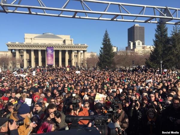 На митинг в центре Новосибирска в воскресенье пришли те, кто возмущен диктатом церковных иерархов и православных активистов. Их действия, вместе с действиями Министерства культуры, привели к смене директора в местном Театре оперы и балета и исчезновению из его репертуара спектакля "Тангейзер", поставленного режиссером Тимофеем Кулябиным. Митинг, как сообщает с места события корреспондент Радио Свобода, собрал не менее трех тысяч человек. Участники митинга послушали видеобращения режиссеров Андрея Звягинцева и Кирилла Серебренникова, короткую проповедь протодиакона Андрея Кураева и приняли резолюцию в защиту свободы творчества.