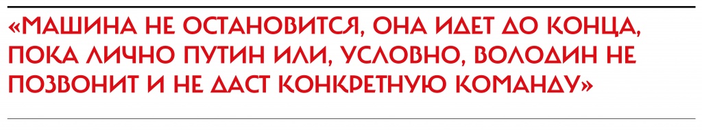 Помнится пару лет назад вы были приглашены на заседание международного клуба «Валдай», задавали вопрос Путину, он обратился к вам «Ксюша», и многие решили, что опала с вас снята, нет? Да нет: все эти сигналы, они так не считываются. Понимаете, когда машина начинает работать против тебя, вся государственная машина, связанная со СМИ, например, или с чем бы то ни было, — пока не будет прямого указания или разрешения, ничего дальше не произойдет. Мне кажется — это целиком и полностью мои догадки, что может быть и был сигнал — оставьте ее в покое, но пока, условно, не было сигнала — можно и берите (работать) — никто, конечно, рисковать не будет. Кому нужны эти проблемы? То же самое, я уверена, и по Леше Навальному: пока не будет сигнала — прекратите его судами преследовать — машина не остановится, она идет до конца, пока лично Путин или, условно, Володин не позвонит и не даст конкретную команду.