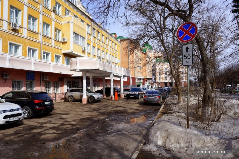 По соседству расположена одна из современных автопарковок. Она относится к новому театру оперы и балета, рассчитана на значительное число автомобилей. Наверное, это удобно и важно. Но если вспомнить, что на месте заасфальтированной площади некогда был уютный пешеходный сквер, приходишь к мысли, что современные усовершенствования не всегда связаны с улучшением условий проживания. Наверное, с этой мыслью согласятся и жители красивого дома, расположенного за стоянкой: в дни театральных постановок — если парковка пользуется спросом, окна лучше держать закрытыми.