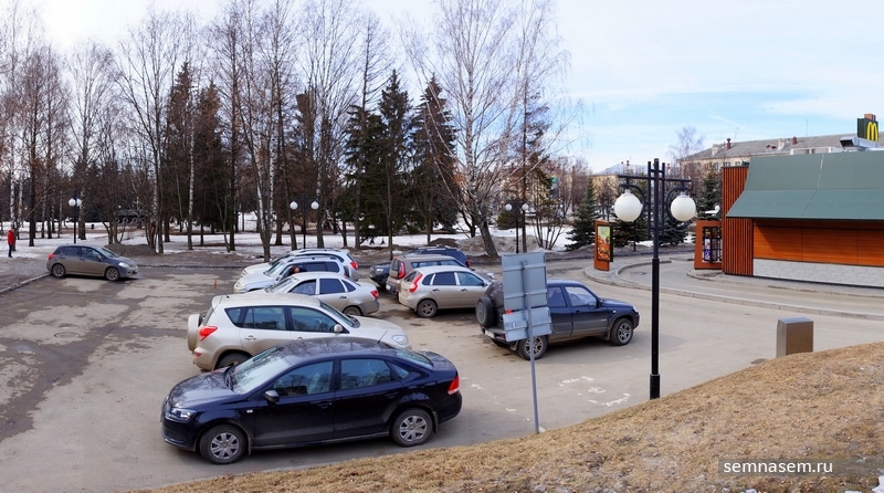 По такому же принципу — за зданием, к которому относится, расположена автопарковка йошкар-олинского «МакДоналдс».