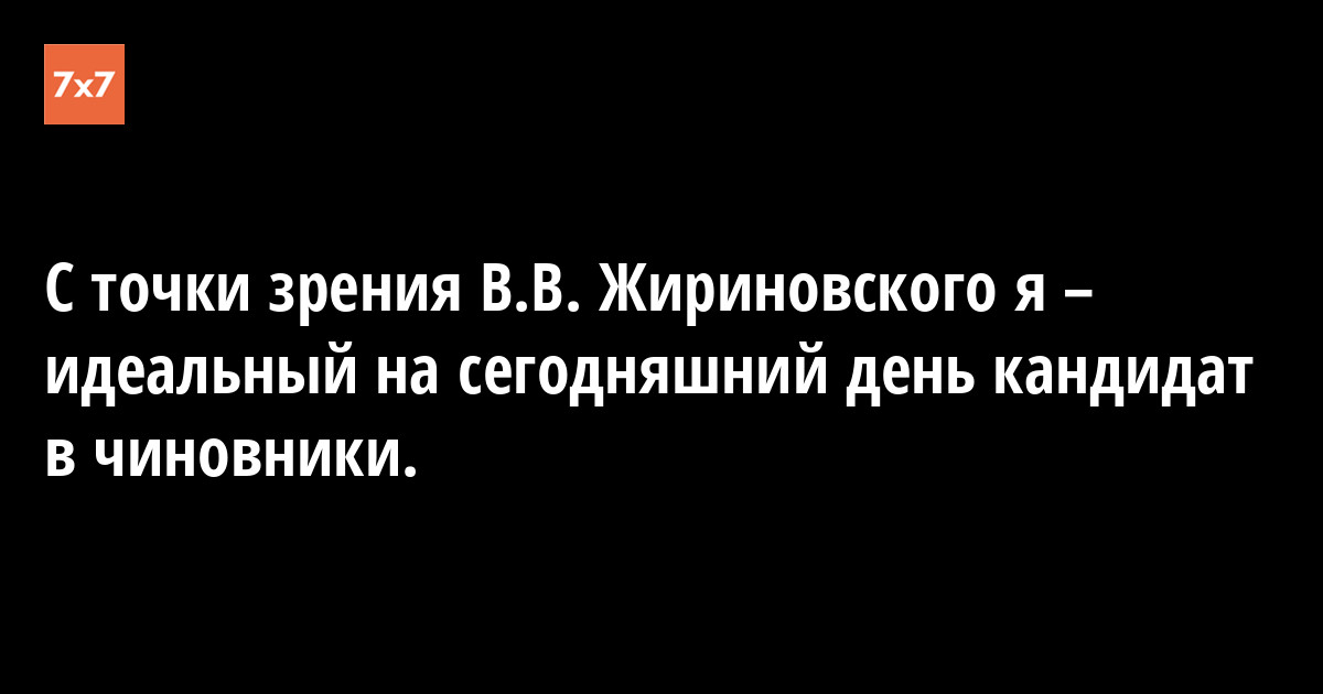 С точки зрения В.В. Жириновского я – идеальный на сегодняшний день кандидат в чиновники.