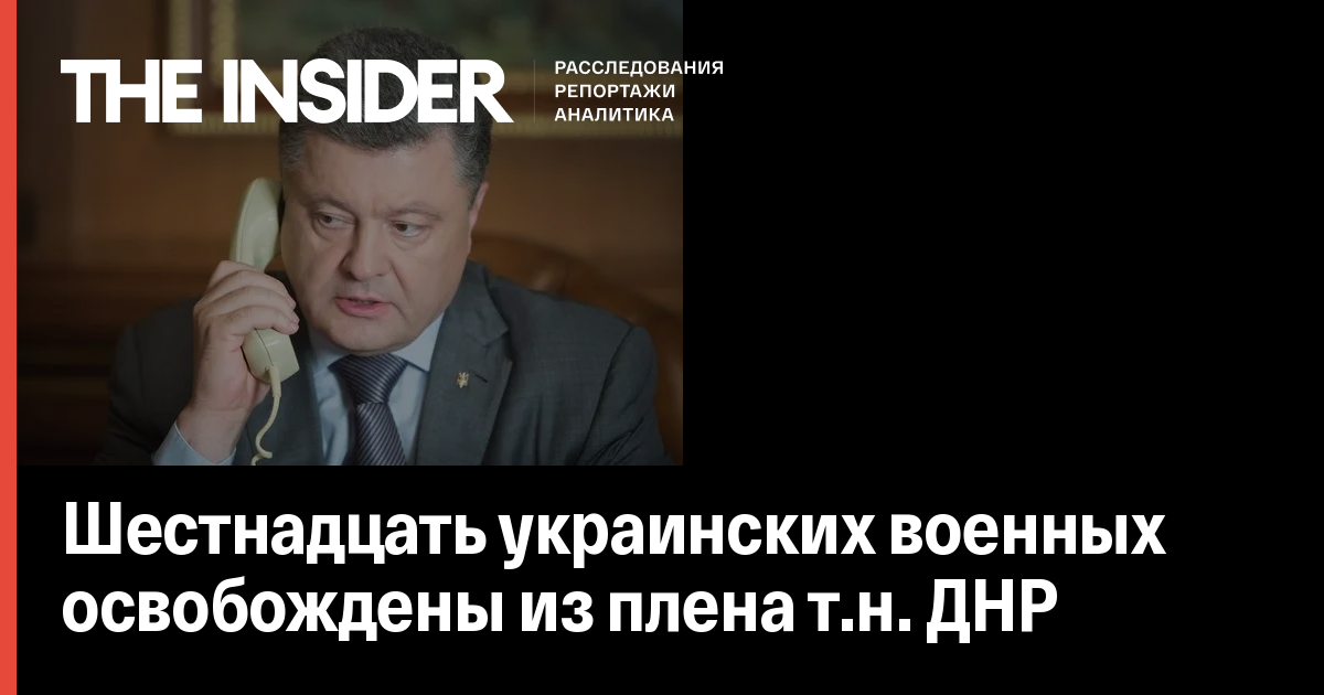 Президент Украины Петр Порошенко сообщил, что 16 украинских военных освобождены из плена самопровозглашенной Донецкой народной республики. Передача состоялась в Марьинском районе Донецкой области. «Только что освободили из плена 16 наших Героев. Хлопцы уже в автобусе едут в Краматорск. Боремся за каждого украинца!», - написал Порошенко в Twitter.