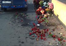 Сотрудник "Гормоста", представившийся Сергеем, объяснил уборку тем, что "истекли 40 дней". После длительного спора он позвонил своему руководств. Ему ответили, что можно все не убирать. В итоге рабочие увезли около четверти цветов. Флаги и фотографии они не тронули.