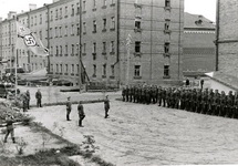 31 января Петрусева поместила на своей ВК-странице снимок с комментарием "Нашла тут фото своего двора". Снимок, скачанный, как сказано в подписи на нем, с сайта Pastvu.com, изображает построение германских военных во дворе дома по ул. Тенишевой, 4; на фотографии отчетливо видно знамя со свастикой.