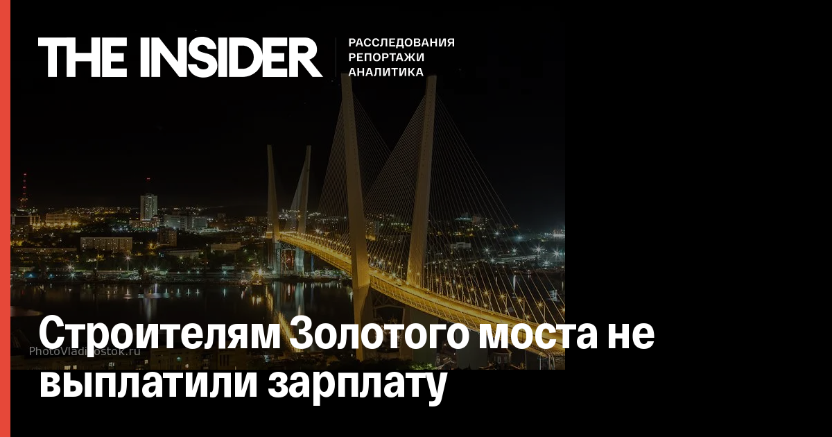 «Работники ЗАО «Тихоокеанская мостостроительная компания", строители Золотого моста, возведенного к саммиту АТЭС, написали открытое письмо Путину, в котором пожаловались на задержанные зарплаты и многочисленные нарушения трудового кодекса. Общая задолженность перед рабочими составляет более 96 млн рублей.