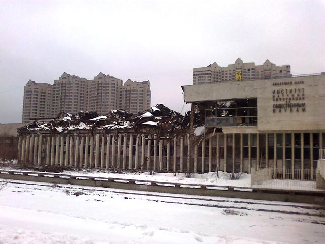 Пожар в фундаментальной библиотеке ИНИОН РАН на юго-западе Москвы произошел в ночь с 30 на 31 января текущего года. Тушение огня продолжалось более суток. Площадь пожара составила две тысячи квадратных метров, произошло частичное обрушение на площади в одну тысячу квадратных метров. Причины возгорания остаются неизвестными. Высказывалась версия об умышленном поджоге. Впрочем, руководство института ее опровергло.