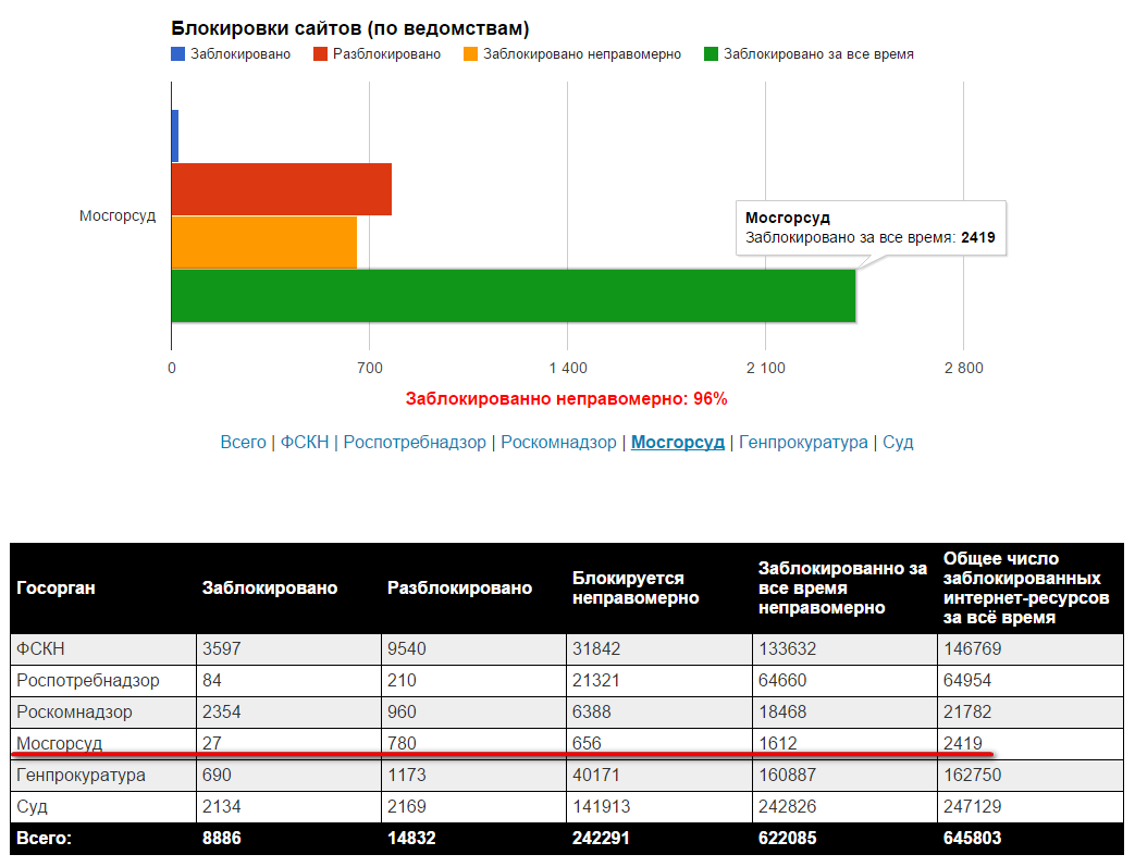 Прямо сейчас по этой же причине неправомерно блокируется 656 сайтов, что составляет 96% от общего числа подвергающихся ограничению доступа интернет-ресурсов по 187-ФЗ.