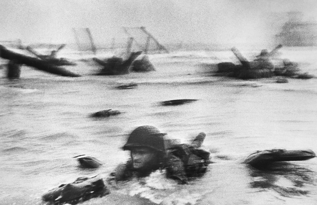 Операция «Оверлорд». Американские солдаты высаживаются на побережье Франции под огнем немецких пулеметов. Омаха-бич, 6 июня 1944 года