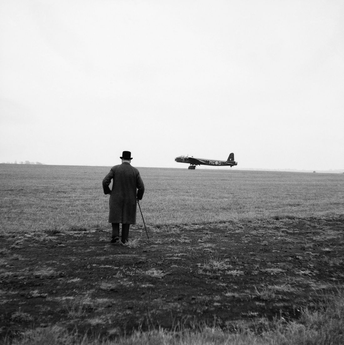 Премьер-министр Уинстон Черчилль смотрит на бомбардировщик «Шорт Стирлинг». 6 июня 1941 года