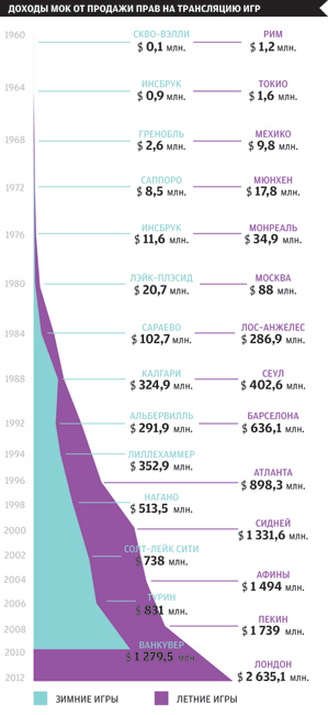Мы начали говорить про телевизор, и тут надо понимать, то телевизор пришел не только с деньгами, но и с очень жесткими требованиями. У меня есть слайд, где показан рост телевизионных контрактов по Олимпийским играм. Только посмотрите, какая динамика!
