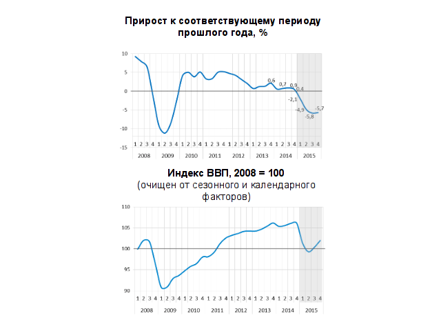В связи с сокращением экспортных доходов, девальвационным шоком и интенсивным оттоком капитала стагнация, характерная для 2014 года, в 2015 году перерастает в кризисное падение производства, говорится в документе.