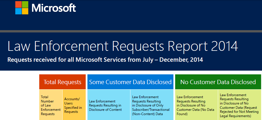 Microsoft опубликовала отчет о правительственных запросах данных пользователей за второе полугодие 2014 г.