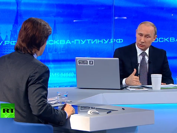 Путин назвал некоторые цифры из декабрьского антикризисного плана. Всего, по его словам, государство выделило 2,3 трлн рублей на преодоление кризиса, 900 млрд рублей - на поддержку банковской системы. 250 млрд предусмотрены для реального сектора экономики. Принято решение направить 100 млрд рублей в область авиастроения, 82 млрд рублей - на поддержку рынка труда, 200 млрд рублей - под конкретные проекты в области реального производства. По словам президента, ВВП страны за прошлый год вырос на 0,6%.
