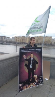 Активистов Альянса защитников животных организаторы не допустили на зоозащитный митинг «Не убий» в гайд-парке Парка культуры. После этого активисты решили проводить посменно одиночный пикет с плакатом, посвященным Иосифу Кобзону, неподалеку. На плакате был изображен депутат с поднятой рукой на фоне сложночитаемого символа. Полиция задержала одного из пикетчиков, Юрия Корецких. Как он рассказал ОВД-Инфо, поводом послужило то, что, пока он стоял с Кобзоном, к нему подошли уходившие с согласованного митинга девушки и показали ему свои плакаты. Полицейские сказали Корецких, что таким образом его пикет перестал быть одиночным. Однако в ОВД «Якиманка», куда был доставлен активист, на него был составлен протокол не по стандартной для пикетчиков статье 20.2 КоАП, а по 20.3 (демонстрация нацистской символики, до двух тысяч рублей штрафа или до 15 суток ареста). Корецких был отпущен под обязательство о явке в ОВД в понедельник в 12:00.