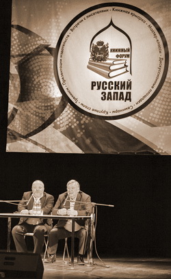 В позапрошлом году на выступление писателя Александр Проханов во время книжного форума «Русский Запад» в областной библиотеке города Пскова собралось столько поклонников, что небольшой актовый зал всех не вместил, и люди сидели в коридоре. [1] На этот раз Проханову предоставили Большую сцену Псковского театра драмы, поэтому в зале поместились все желающие. Публика тоже выглядела иначе. В 2013 году это были, в основном, сверстники Проханова. Сейчас же было много молодёжи. Десятка два военных в форме, пришедших организованно. Несколько школьных классов. Было несколько юных одиноких барышень, явившихся восхититься писателем-мистиком. 77-летний Проханов ещё способен восхищать юных барышень.