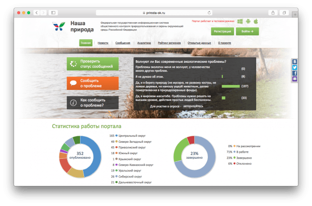 Мобильное приложение и сайт «Наша природа» должно позволять гражданам своевременно сообщать информацию об экологических правонарушениях с привязкой к конкретным координатам на карте местности. Зафиксированное экологическое нарушение (незаконная свалка, сброс загрязненных сточных вод, незаконная рубка) пользователь фотографирует или снимает на видео, например, на мобильный телефон, указывает его местоположение на карте, дает краткое описание. После модерации отправленная электронная заявка поступает на исполнение в региональное управление Росприроднадзора, либо орган власти субъекта РФ, либо муниципального образования, в функции которого входит реагирование на такой вид нарушений законодательства.