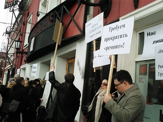 Часть сотрудников "Таганки" вышли на пикет против закрытия театра на ремонт